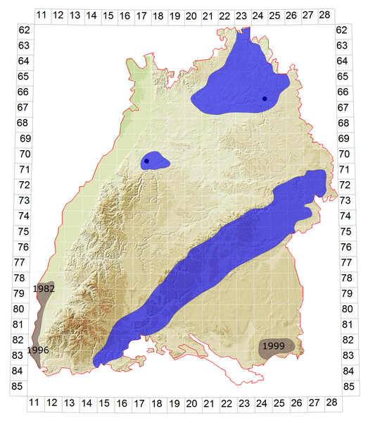 Schematische Verbreitung von J. globulariae in Baden-Württemberg: