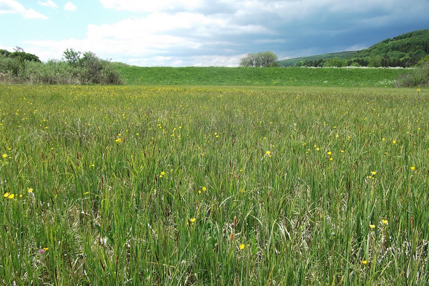 Extensiv genutztes Grünland in einer Talaue auf der Schwäbischen Alb (Melchingen) als Habitat des Ampfer-Grünwidderchens.