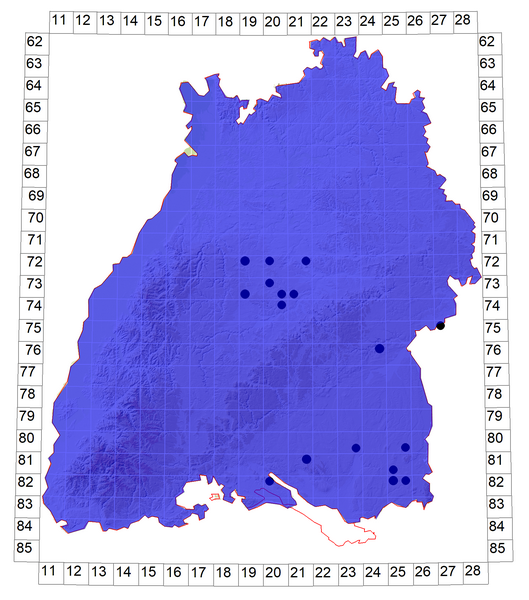 Schematische Verbreitung von A. cyanea in Baden-Württemberg: