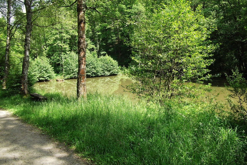 Teilbeschatteter Waldweiher im Albvorland (Waldenbuch), charakteristisches Habitat der Blaugrünen Mosaikjungfer.