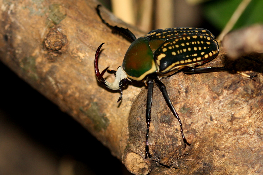 Die Imagines bezogen ein großes Terrarium mit einem Bodengrund aus Laubwaldhumus mit 30 cm Tiefe. Das Terrarium wurde mit T5 und HQI beleuchtet, um den Käfern Licht und Wärme zu bieten, was sich sehr positiv auf deren Aktivität auswirkt. Als Nahrung nahmen die Käfer Banane und Fruitjellies an. Schon bald kam es zu ersten Verpaarungen und die Suche im Substrat erbrachte einige der ca. 2 mm großen Eier. Diese entnahm ich und brachte sie in Heimchendosen (450 ml) unter. Zahlreiche Eier erwiesen sich als nicht fertil, sodass die Schlupfrate deutlich geringer war wie bei A. passerinii. Über die Dauer der Zeit konnte ich aber doch noch etwa 60 Larven erhalten, von denen ich ca. 20 behielt und nun die nächste Generation aufziehe.