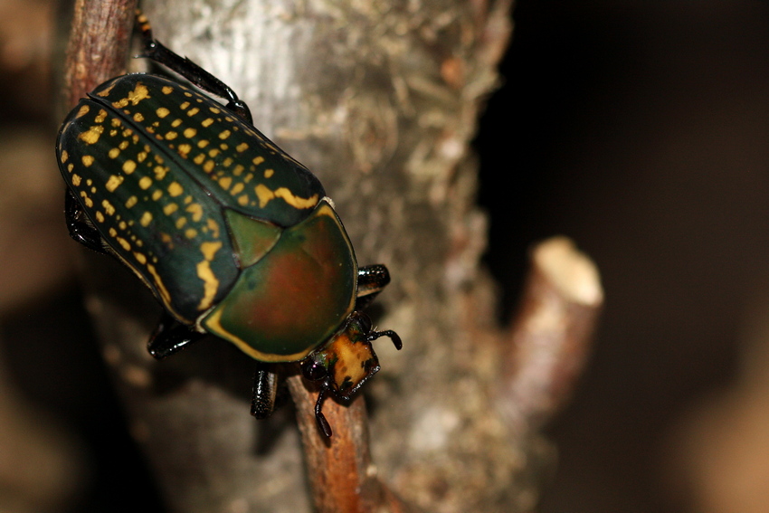 Im Winter 2024 erhielt ich 10 Larven dieser wunderschönen Rosenkäferart. Da die Larven vor allem in den jüngeren Larvenstadien (L1/L2) untereinander kannibalisch sind, zog ich sie einzeln in 5 l Boxen auf, was mehr als Platz genug für A. harrisi ist. Die Larven lassen sich gut in Laubwaldhumus großziehen, Additive in Form von getrockneten Shrimps wurden ebenfalls gerne angenommen. Die Temperaturen bewegten sich zwischen 18 und 22 °C. Im Frühjahr 2025 verpuppten sich die Larven, wobei sie die Kokons sowohl auf der Substratoberfläche als auch innerhalb des Substrats anlegten. Die Kokons ließ ich über die folgenden zwei Monate austrocknen, um sie dann wieder bis zum Schlupf der Käfer nach dreieinhalb Monaten wöchentlich durch oberflächliches Sprühen leicht zu befeuchten. Mit dieser Methode hatte ich keine Verluste während der ansonsten häufig heiklen Kokonphase.