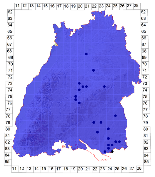 Schematische Verbreitung von A. imperator in Baden-Württemberg: