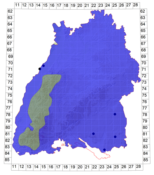 Schematische Verbreitung von A. parthenope in Baden-Württemberg: