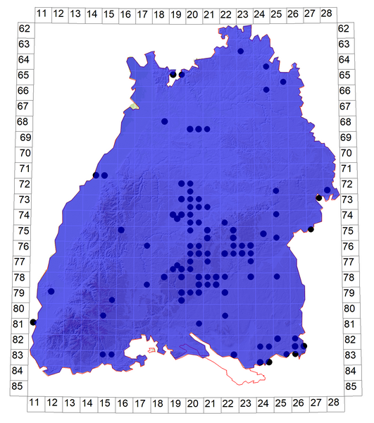 Verbreitung in Baden-Württemberg: In Baden-Württemberg bestehen kaum Verbreitungslücken, allein in den Hochlagen des Schwarzwaldes und in stark flurbereinigten Regionen tritt die Art etwas seltener auf (Ebert & Rennwald 1991a).