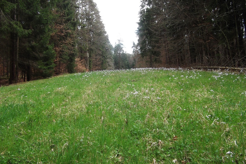 Typisches Habitat des Aurorafalters im Albvorland (Dettenhausen), eine luftfeuchte Waldschneise mit reichlich Wiesenschaumkraut.