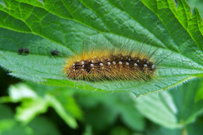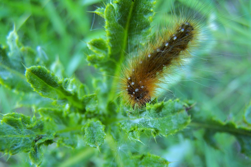 Raupe des Braunen Bärs (Arctia caja) im Schönbuch (NSG Schaichtal), Mai 2008.