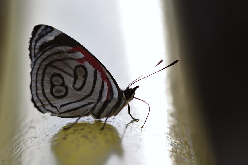Die Familie der Würfelfalter (Riodionidae), die bei uns nur mit einer Art vertreten ist, ist in den Tropen sehr artenreich. Auch dieser unbestimmte Falter ist dieser Familie zuzuordnen.