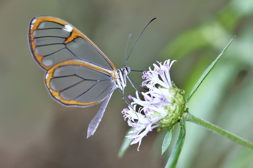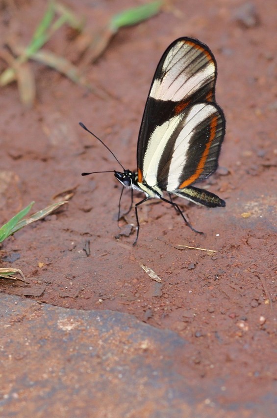 Von diesen fast durchsichtig erscheinenden Tagfaltern flogen mehrere Arten vor allem an eher schattigen, luftfeuchten Stellen. Bei diesem Falter könnte es sich um Pseudoscada erruca handeln, jedoch existieren zahlreiche sehr ähnliche Arten.