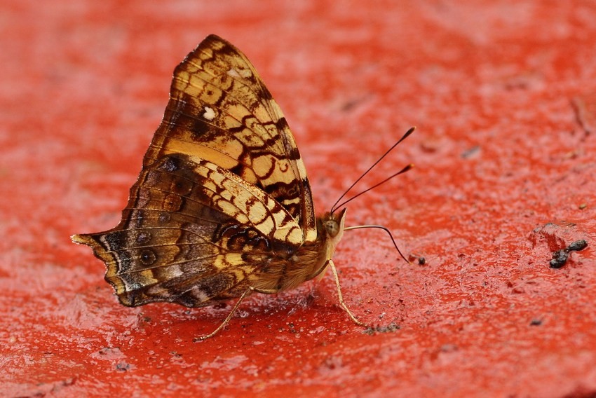 Auch dieser Nymphalide, bei dem es sich wahrscheinlich um Hypanartia lethe handelt, sieht unserem Distelfalter etwas ähnlich.