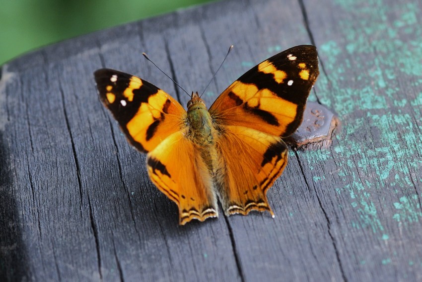 Ein Nymphalide, der etwas an unsere heimischen Distelfalter und Admiral erinnert, möglicherweise näher verwandt mit der folgenden Art.