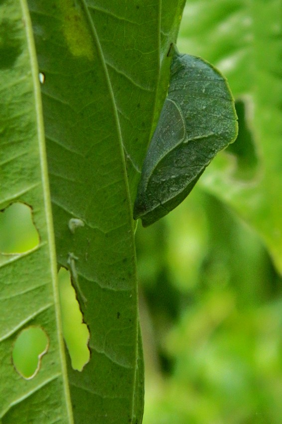 Nymphaliden-Puppe im Grün des Regenwaldes bei Iguazu.