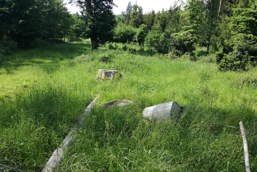 Larvalhabitat des Feurigen Perlmutterfalters im württembergischen Allgäu (Immenried); Kahlhieb mit teilweise lückiger Bodenvegetation und Veilchenvorkommen.