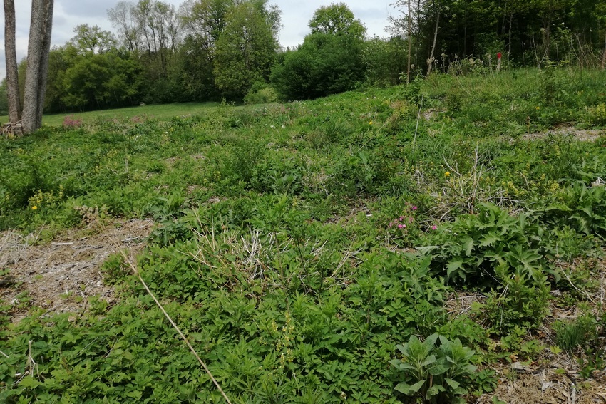 Weiteres Larvalhabitat von A. adippe im württembergischen Allgäu (Leupolz); eine frische Schlagflur mit guten Veilchenbeständen.