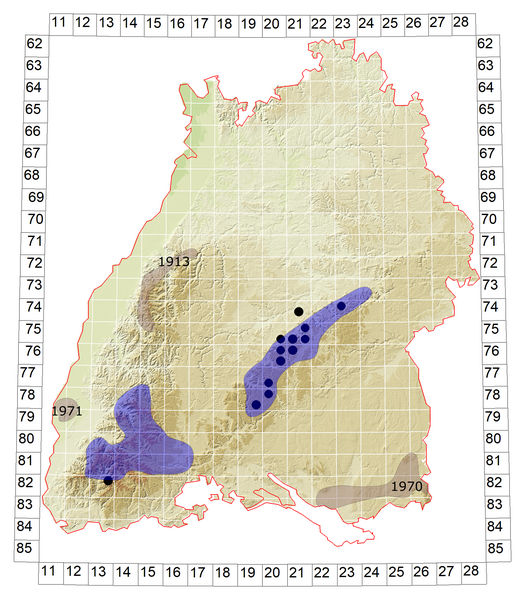 Schematische Verbreitung von A. niobe in Baden-Württemberg: