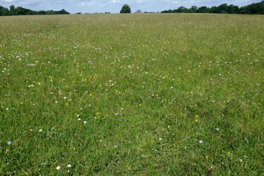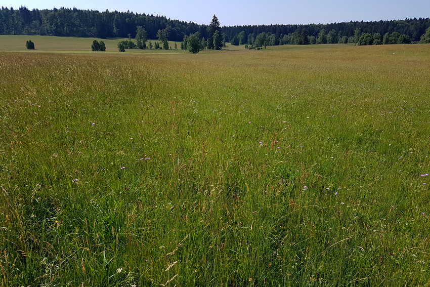 Großflächige Einmähder auf der Südwestalb (NSG Irndorfer Hardt) als Habitat des Mittleren Perlmutterfalters.