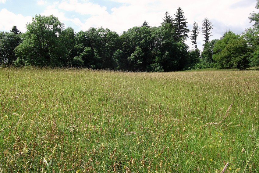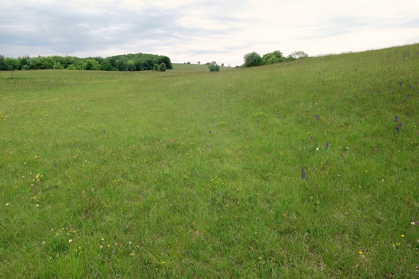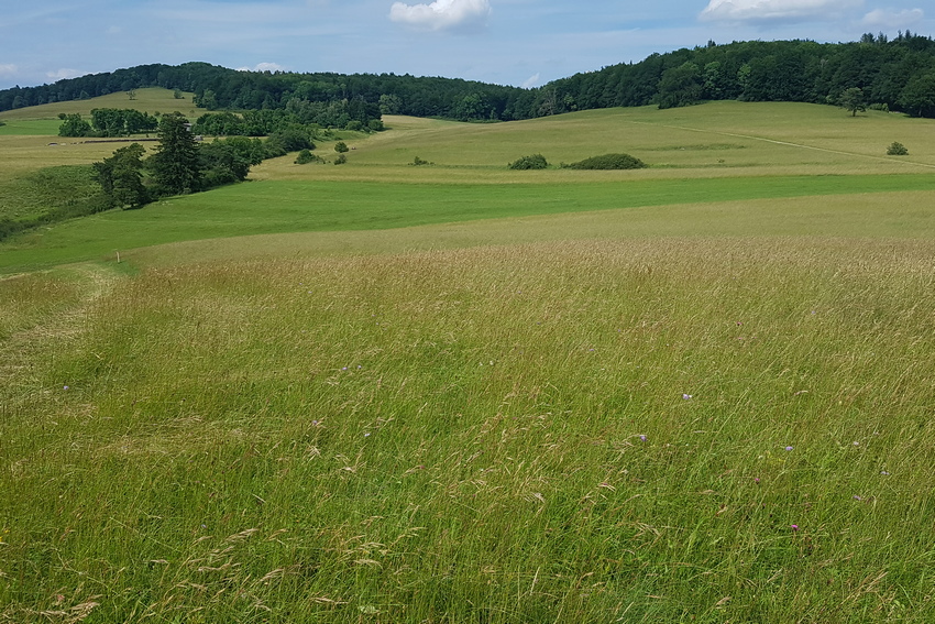 Lebensraum des Mittleren Perlmutterfalters auf der Schwäbischen Alb (Undingen); offenes und extensiv genutztes, großflächiges Magergrünland.