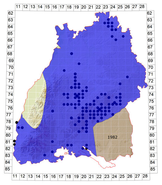 Schematische Verbreitung von B. dia in Baden-Württemberg:
