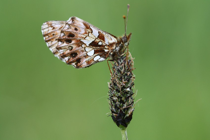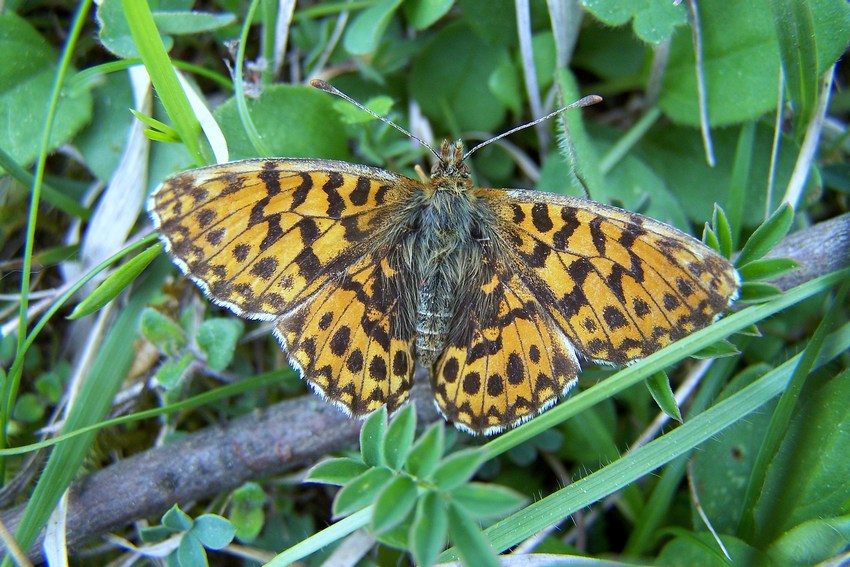 Weitere Flügelunterseite des Magerrasen-Perlmutterfalters von der Schwäbischen Alb (Mehrstetten), Mai 2012.