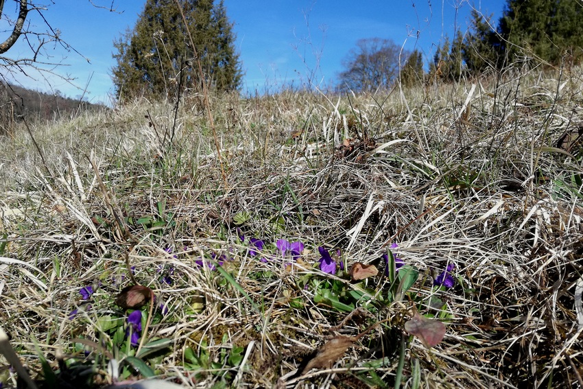 Larvalhabitat von B. dia in den Oberen Gäuen (Schafhausen); kurzrasiger und lückiger Halbtrockenrasen mit guten Veilchenvorkommen.