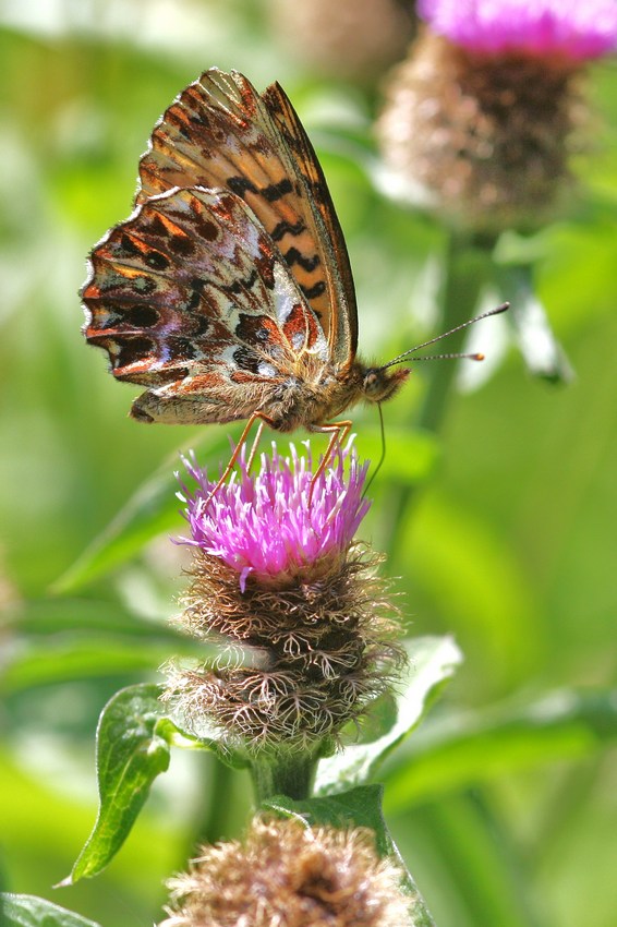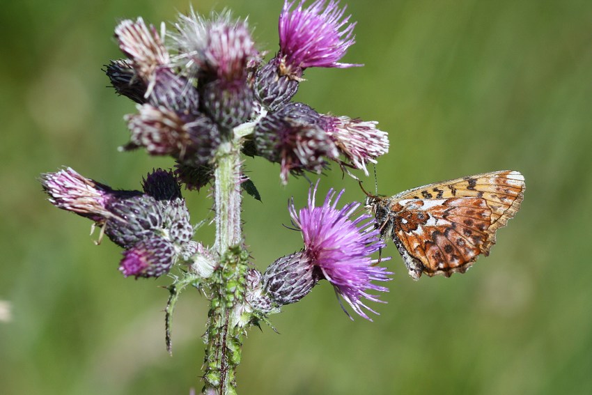 Boloria titania an Sumpf-Kratzdistel saugend auf einer Feuchtwiese im Südschwarzwald (Furtwangen), Juli 2011.
