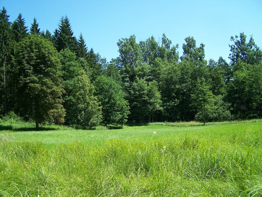 Habitat von B. ino im Schönbuch (Kayher Tal): Im Vordergrund ist die Feuchtbrache mit Mädesüß als potentielle Wirtspflanze zu erkennen.