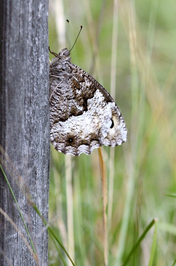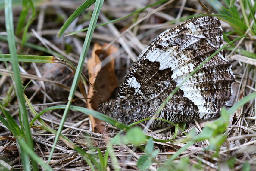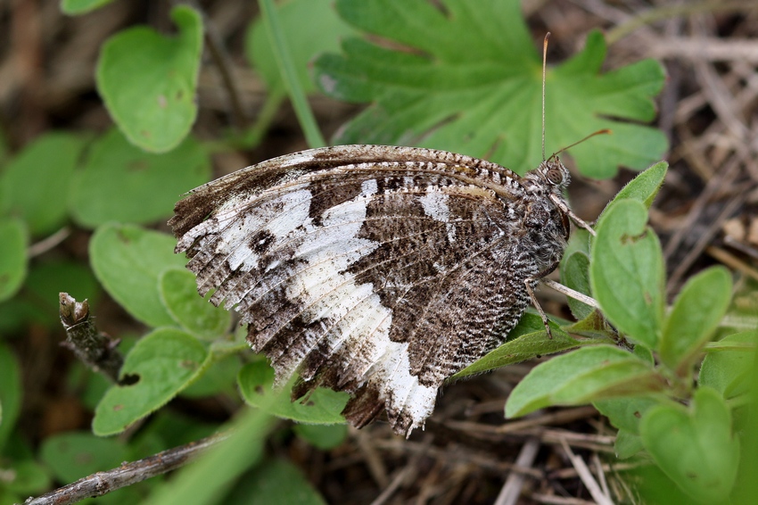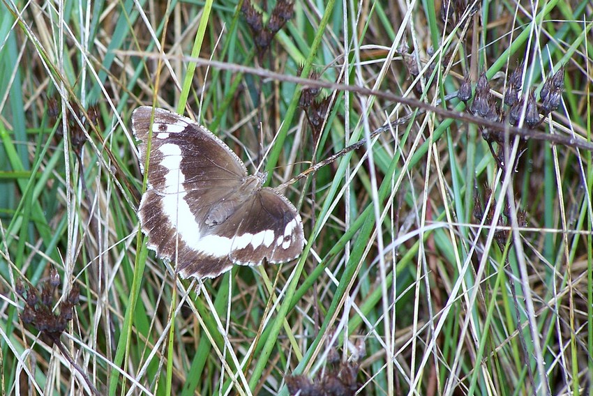 Bestimmung: Der Weißbindige Waldportier aufgrund seiner Größe und der deutlich sichtbaren weißen Binde auf der Hinterflügel-Unterseite gut zu bestimmen.