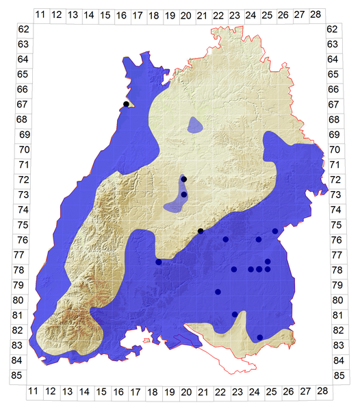 Schematische Verbreitung von E. calamita in Baden-Württemberg: