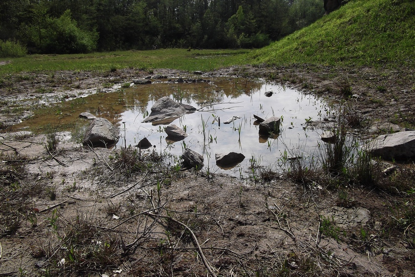 Künstlich angelegtes, ablassbares Gewässer auf der Schwäbischen Alb (Trochtelfingen), das der Kreuzkröte zur Reproduktion dient.