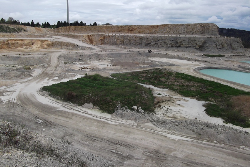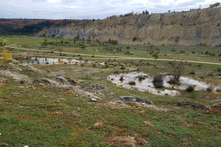 Überblick über einen Steinbruch am Albtrauf (Dotternhausen), der von einer individuenreichen Population der Kreuzkröte besiedelt wird.
