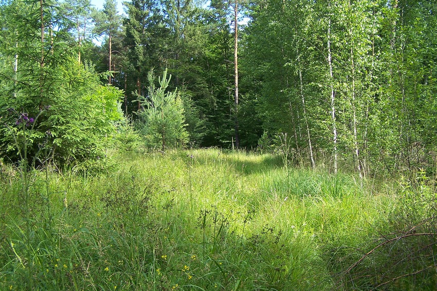 Habitat von C. dominula im Albvorland (Waldenbuch), luftfeuchte Waldschneise und angrenzende Sturmwurfflächen.