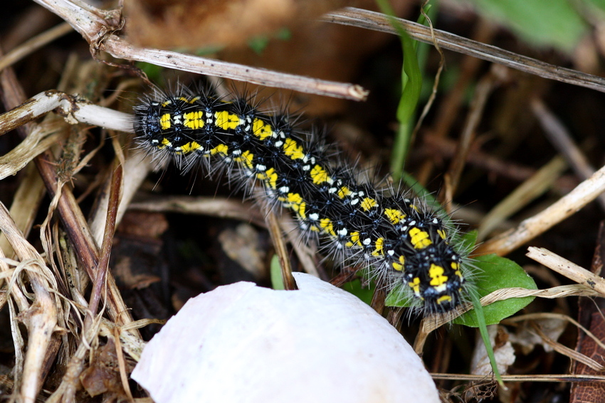 Larve des Schönbärs in einem Tobel auf der Adelegg, Mai 2017.