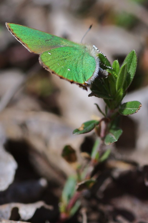 Weiterer Grüner Zipfelfalter am südlichen Oberrhein (NSG Grißheimer Trockenaue), April 2011.