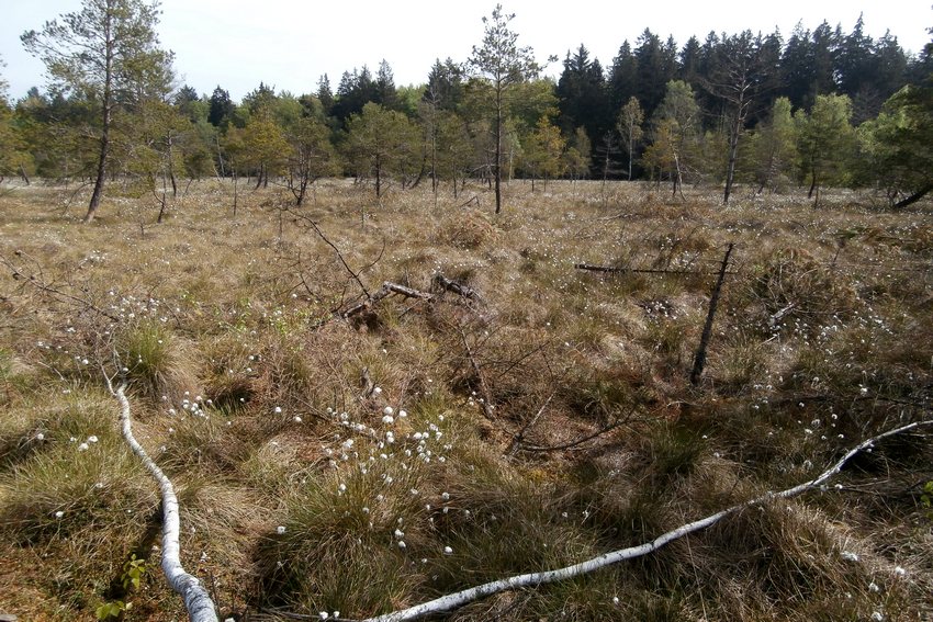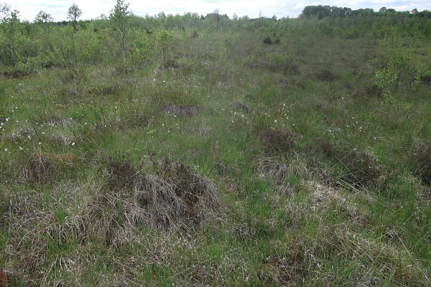 Verheideter Hochmoorbereich in Oberschwaben (Bad Wurzach) als charakteristisches Habitat des Grünen Zipfelfalters im Alpenvorland.