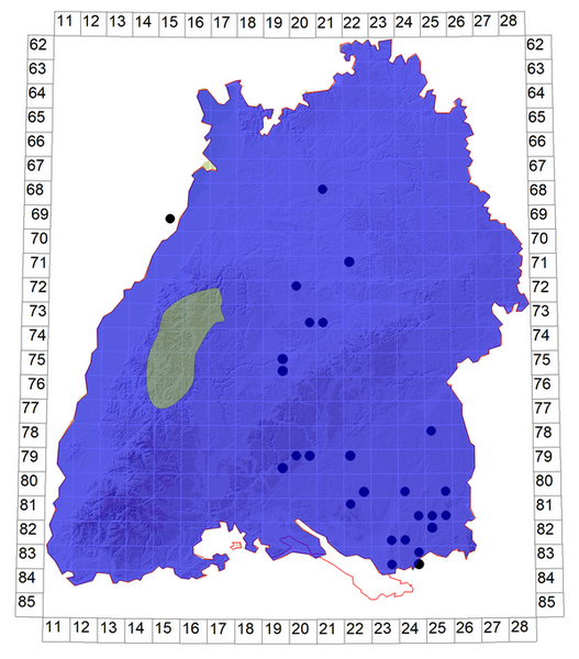 Schematische Verbreitung von C. splendens in Baden-Württemberg: