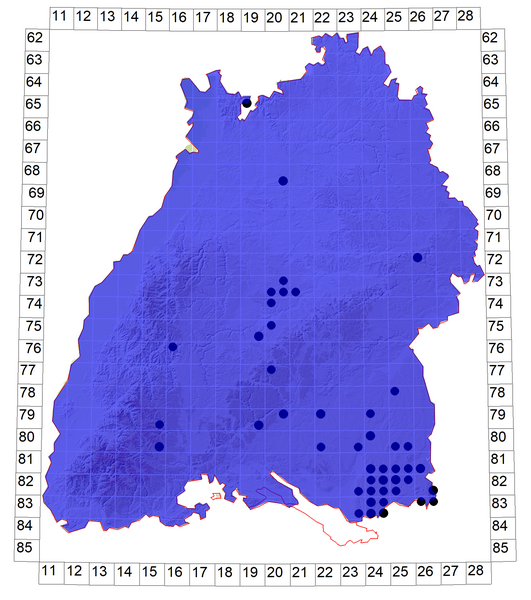 Schematische Verbreitung von C. virgo in Baden-Württemberg: