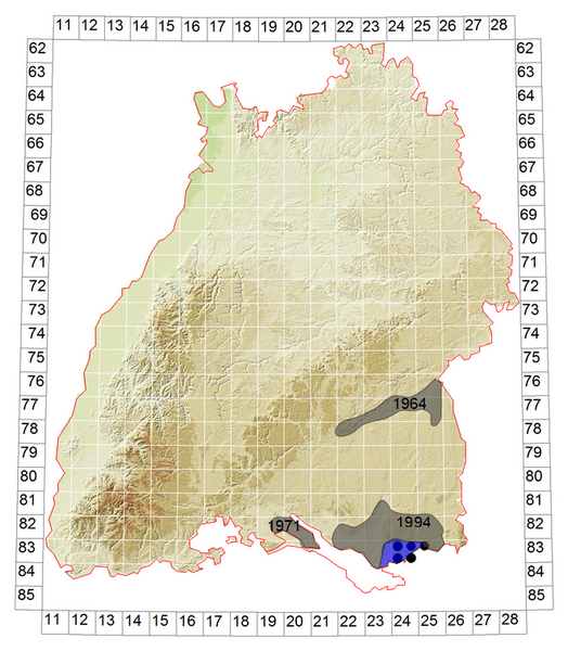 Schematische Verbreitung von C. flocciferus in Baden-Württemberg: