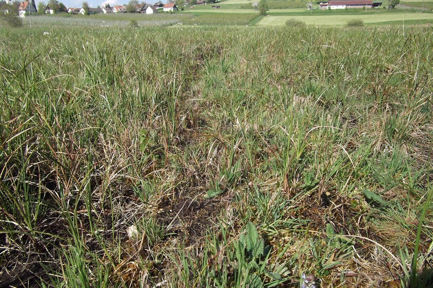 Mirkohabitat an der Larvenfundstelle, lückige Krautschicht mit Offenbodenstellen, Grenzgebiet Bayern/Baden-Württemberg.