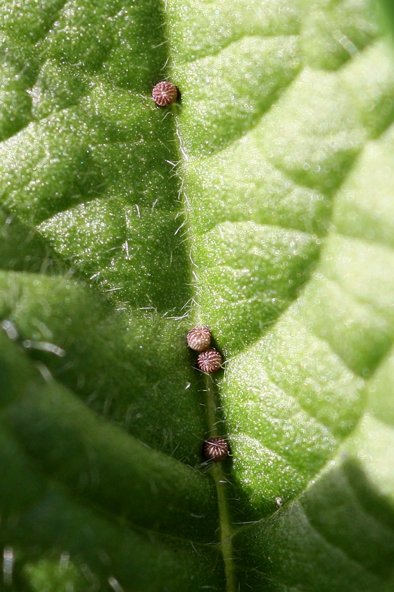 Weitere mit Eiern belegte Grundblätter, Oberschwaben (Neukirch), Juni 2015.