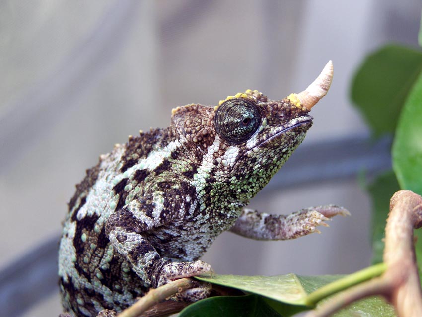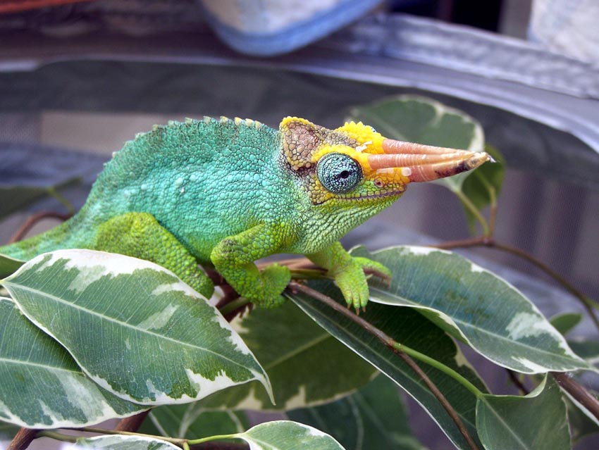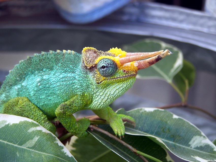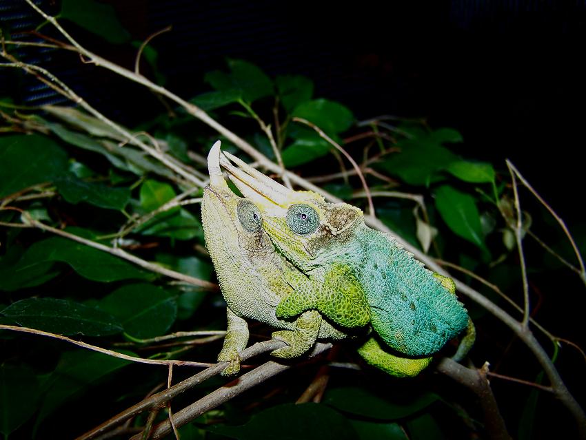 Ich bekam meine Tiere Anfang Mai 2007 von einem erfahrenen Chamäleonzüchter. Die Chamäleons waren allerdings Wildfänge aus dem Jahre 2006 und bereits adult. Ich hielt die Tiere getrennt in Flexarien der Größe 40x40x60 cm. Dies ist ausreichend, da die Chamäleons nur 16-20 cm Gesamtlänge erreichen. Den Sommer (Mai - September) verbrachten die Chamäleons ausschließlich auf der Terrasse, von der sie nur bei länger andauernden Hitzeperioden über 30 °C oder wochenlangen Schlechtwetterphasen weichen mussten. Hierbei ist es wichtig zu erwähnen, dass die Flexarien vor allem im Hochsommer während der Mittags- und Nachmittagsstunden keine volle Sonne ohne Rückzugsmöglichkeit erhielten. Die Chamäleons sind zwar relativ robust gegenüber kurzzeitigen Temperaturspitzen (z. B. wenn es im Hochsommer mittags einige Stunden um die 30 °C Lufttemperatur hat), vertragen aber weder länger andauernde Hitze (z. B. ständige Umgebungstemperaturen über 28 °C), noch anhaltende Tieftemperaturen (z. B. feucht-kühle 15 °C ohne Aufwärmmöglichkeit). Im Winter hielt ich die Tiere in einem kühlen Raum, der Tagestemperaturen von 23 °C und Nachttemperaturen von 16-18 °C gewährleistete. Nach zahlreichen verschiedenen Beleuchtungsversuchen, verwendete ich für das Winterhalbjahr ausschließlich Bright Sun Dessert 70 W. Eine Grundtemperatur von über 28 °C sollte unbedingt vermieden werden, eine Nachtabsenkung unter 20 °C ist ebenfalls notwendig. Alle Futtertiere wurden mit Herpetal eingestäubt, Wachsmottenraupen wurden besonders gerne gefressen. Täglich wurde 2-3 Mal gesprüht, da eine hohe Luftfeuchte ebenso wichtig wie eine gute Durchlüftung ist.