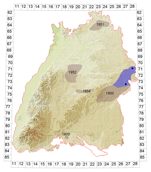 Schematische Verbreitung von C. briseis in Baden-Württemberg: