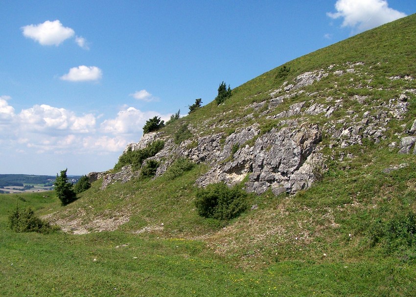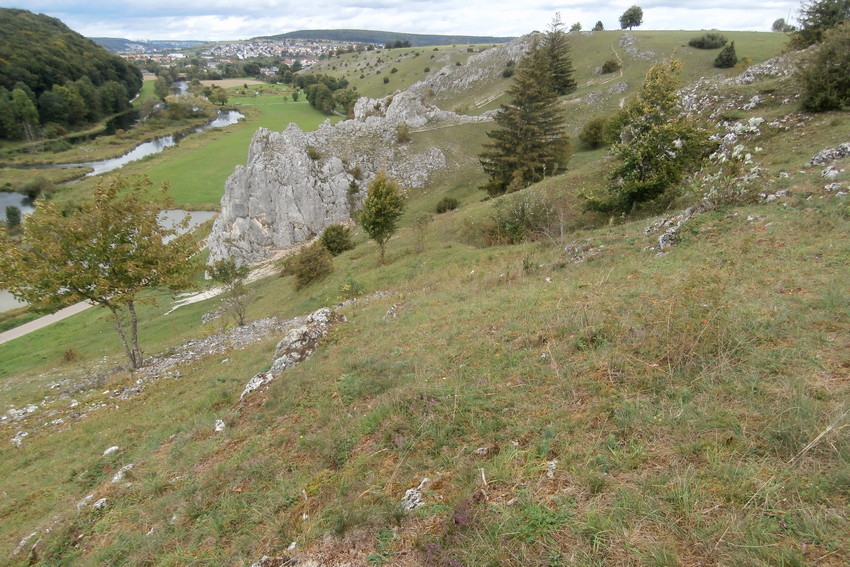 Habitat der Berghexe im Östlichen Albvorland (Bopfingen), ein offener, kurzrasiger, mit Felsen durchsetzter Magerrasen.