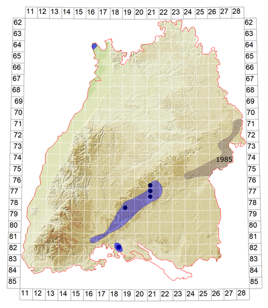 Schematische Verbreitung von C. apricarius in Baden-Württemberg: