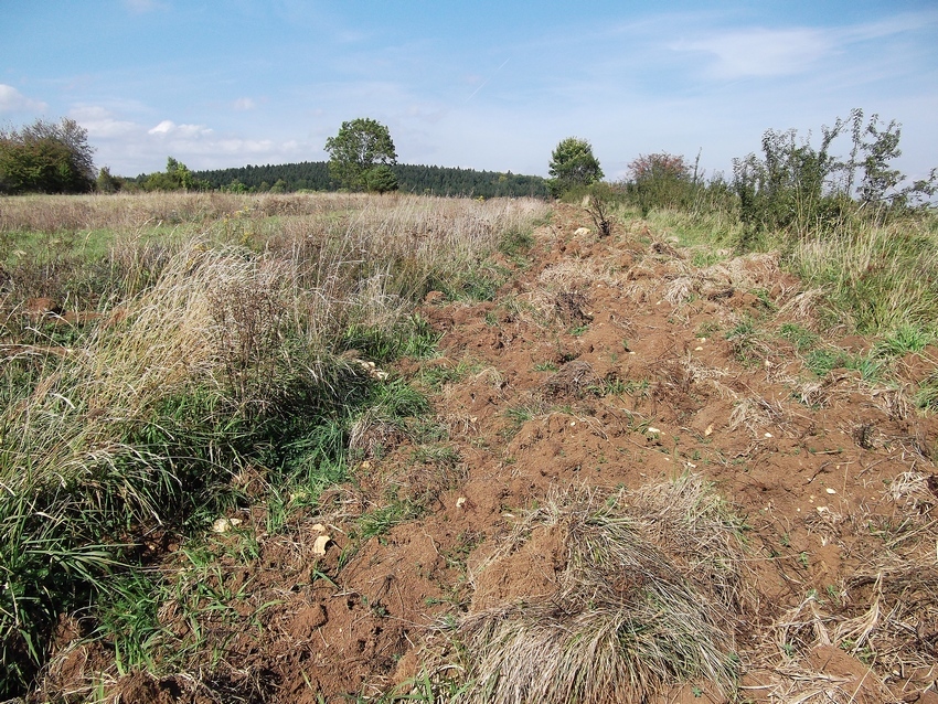 Als Naturschutzmaßnahme aufgehackte Ackerbrache als Lebensraum für den Feldgrashüpfer auf der Schwäbischen Alb (Gammertingen).