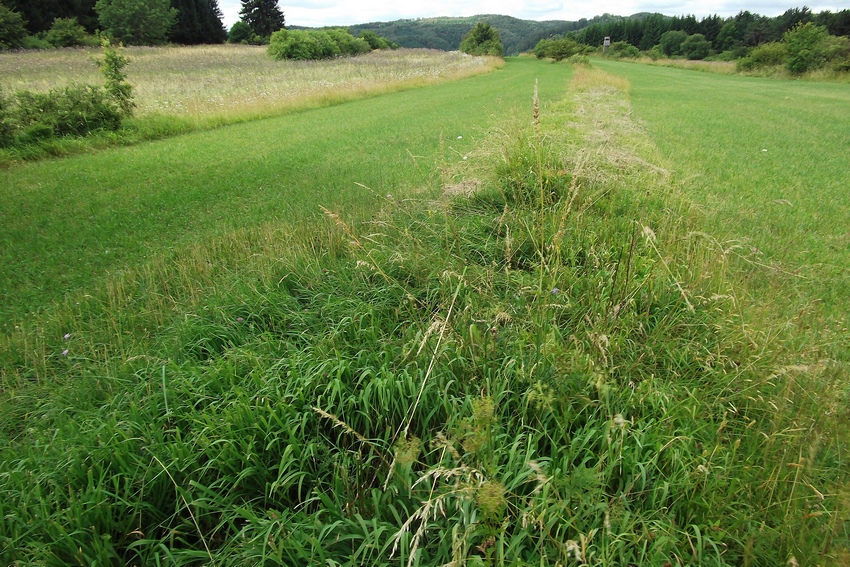 Breiter, noch offener Ackerrandstreifen als Habitat für den Feldgrashüpfer auf der Schwäbischen Alb (Gammertingen).