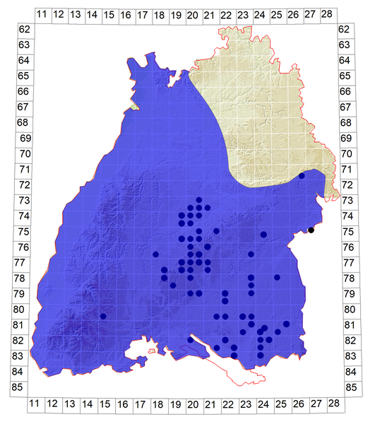 Schematische Verbreitung von C. dispar in Baden-Württemberg: