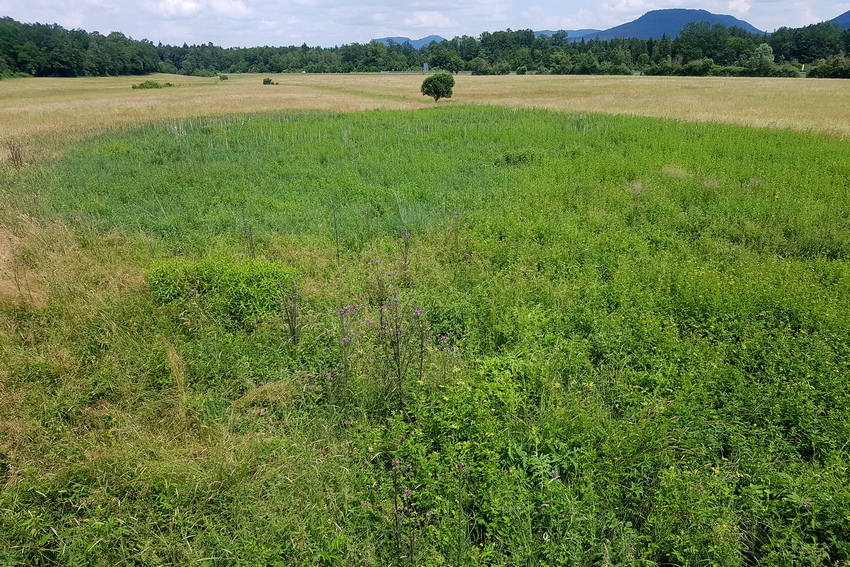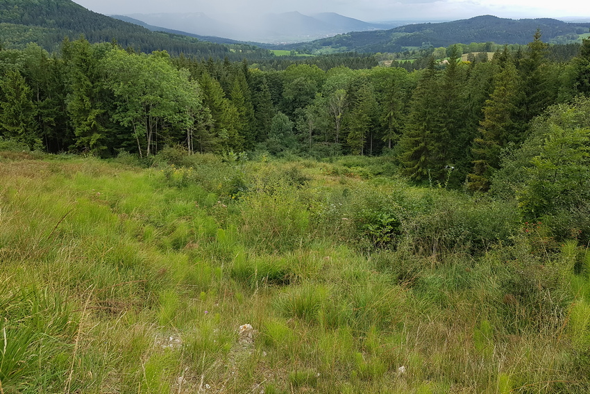 Habitat der Großen Goldschrecke im Albvorland (NSG Altwiesen); seit Jahren nicht mehr gemähte Feuchtbrache.