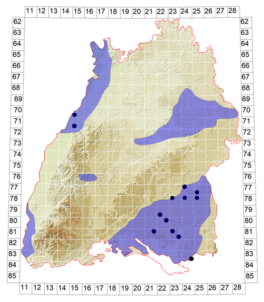 Schematische Verbreitung von C. hybrida in Baden-Württemberg: