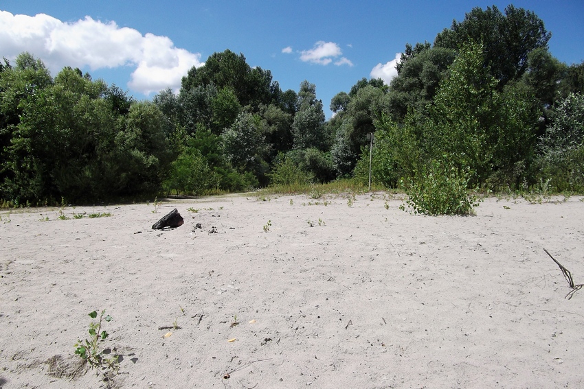 Natürliches Habitat des Dünen-Sandlaufkäfers am nördlichen Oberrhein (Rheinstetten), das von Überflutungen geprägte, sandige Rheinufer.