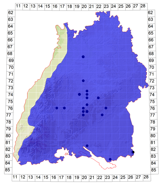 Schematische Verbreitung von C. sylvicola in Baden-Württemberg: